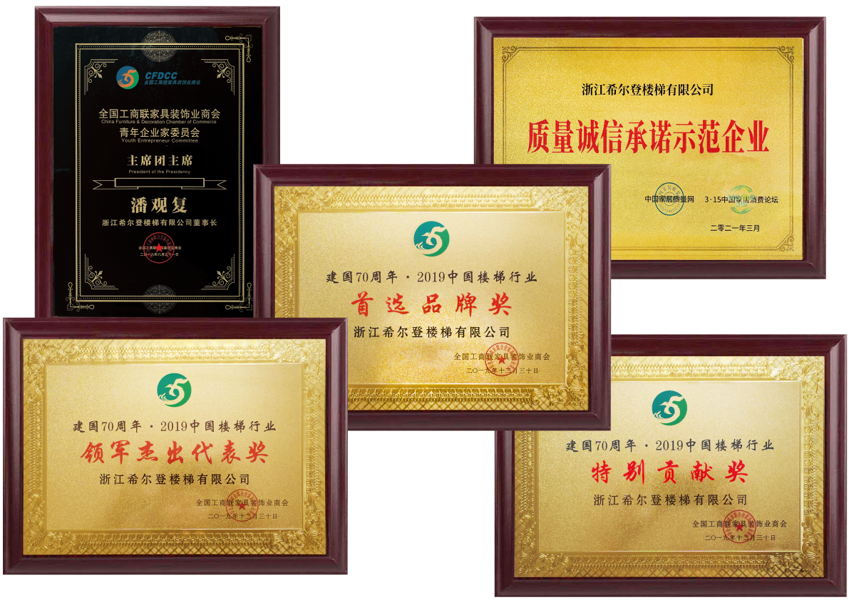 在不斷提升希爾登品牌和企業(yè)實(shí)力的同時(shí),希爾登一直熱心參與樓梯行業(yè)的健康發(fā)展;參與創(chuàng)立全國(guó)工商聯(lián)樓梯專委會(huì)并被推選為中國(guó)樓梯品牌聯(lián)盟執(zhí)行主席和樓梯專委會(huì)執(zhí)行會(huì)長(zhǎng);憑借在行業(yè)內(nèi)的專業(yè)地位,希爾登參與了《木質(zhì)樓梯》,《木質(zhì)樓梯安裝驗(yàn)收和使用規(guī)范》,《住宅內(nèi)用樓梯》,《建筑用玻璃與金屬護(hù)欄》四個(gè)國(guó)家和行業(yè)標(biāo)準(zhǔn)的起草工作。先后榮獲“中國(guó)樓梯十大品牌”、“金木樓梯領(lǐng)軍品牌”、“中國(guó)泛家居發(fā)展中企業(yè)500強(qiáng)”、“中國(guó)家裝行業(yè)金鉆獎(jiǎng)”、“金屬木質(zhì)樓梯一級(jí)資質(zhì)”等二十多個(gè)榮譽(yù)和稱號(hào)。我們幾乎參與和見證中國(guó)樓梯發(fā)展歷程中的所有重大事件。希爾登過去,現(xiàn)在和未來都是中國(guó)樓梯的標(biāo)桿企業(yè)。